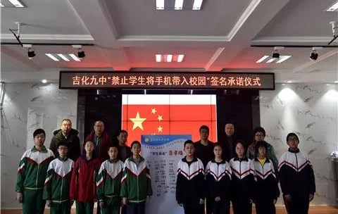 吉林市吉化九中举办“禁止学生将手机带入校园”签名承诺仪式