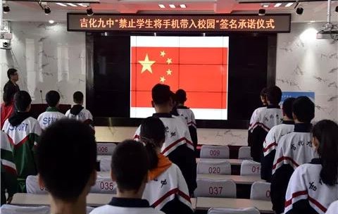 教育部2021年1月印发了《教育部办公厅关于加强中小学生手机管理工作的通知》,文件中明确要求,“原则上中小学生不得将个人手机带入校园。学生确有将手机带入校园需求的,须经学生家长同意、书面提出申请,进校后应将手机交由学校统一保管,禁止带入课堂。”为了认真贯彻落实通知要求,吉林市吉化九中3月9日举办了禁止学生将手机带入校园签名承诺仪式。